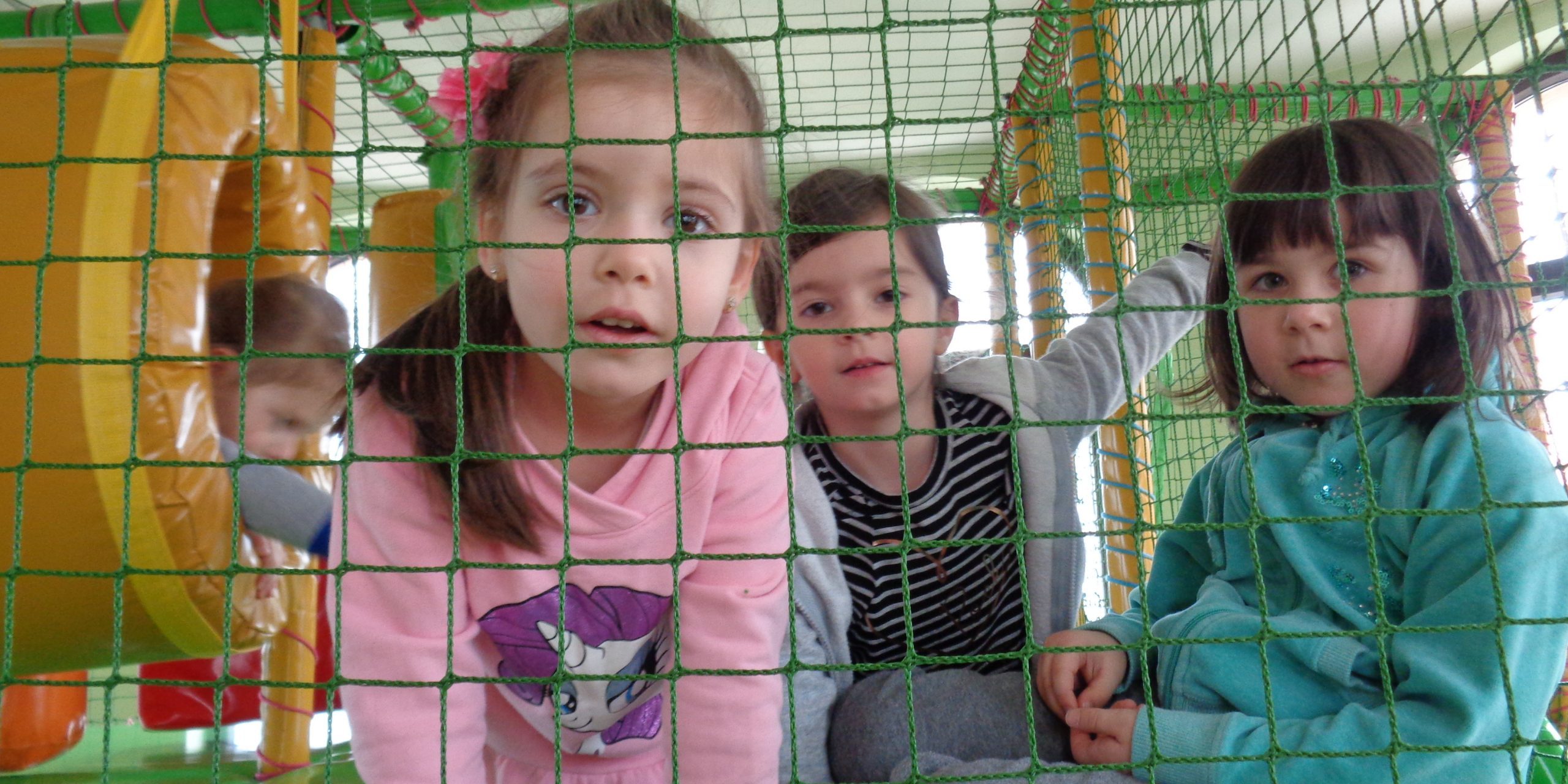 Нашата вътрешна зона за игра е обезопасена и подходяща за малки и големи деца. Изпълнена е с леки физически предизвикателства за катерене, промушване, пързалка и басейн за приземяване пълен с пъстроцветни топки.